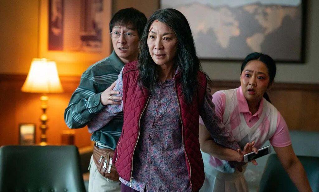 La historia, que se divide en tres fases (Todo, En Todas Partes y Al Mismo Tiempo), toma lo que debería ser una simple auditoría como el punto de partida para introducir los elementos que hacen que la película no sea solo una comedia dramática, sino que sume ciencia ficción al momento en que Waymond se vuelve un artista marcial con dotes de espía y revela que existe el multiverso.